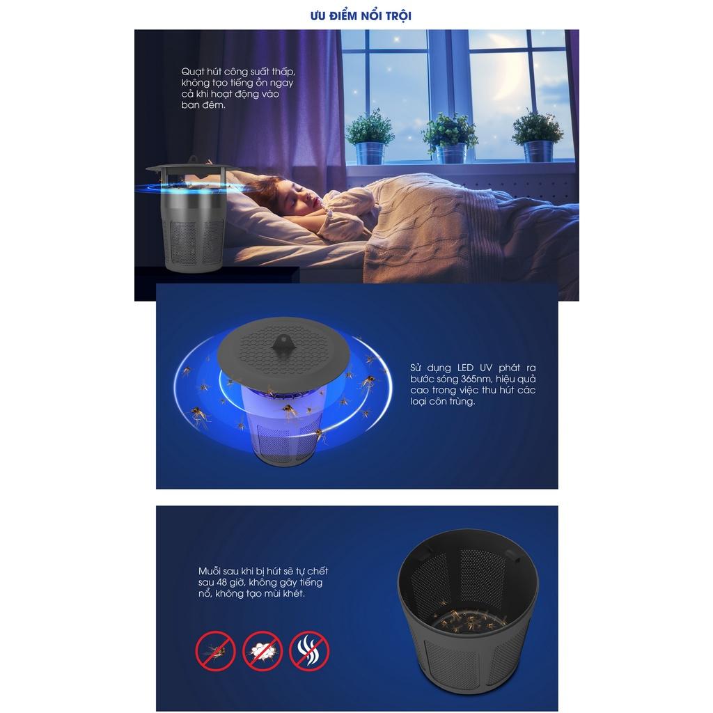 Muỗi khi bị hút vào ngăn đựng tự chết trong 48 giờ, không gây tiếng nổ, không tạo mùi khét.