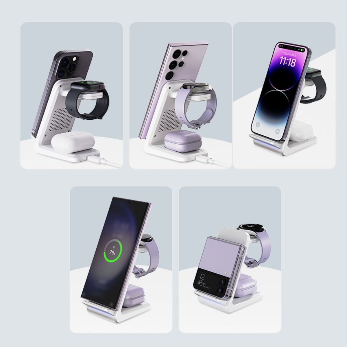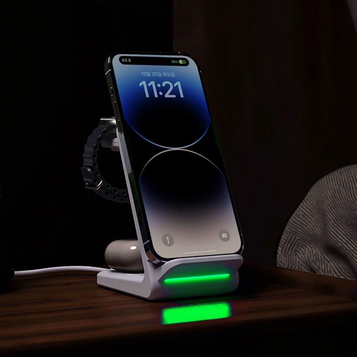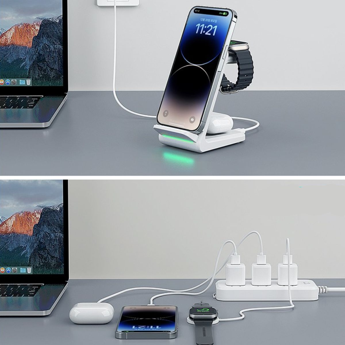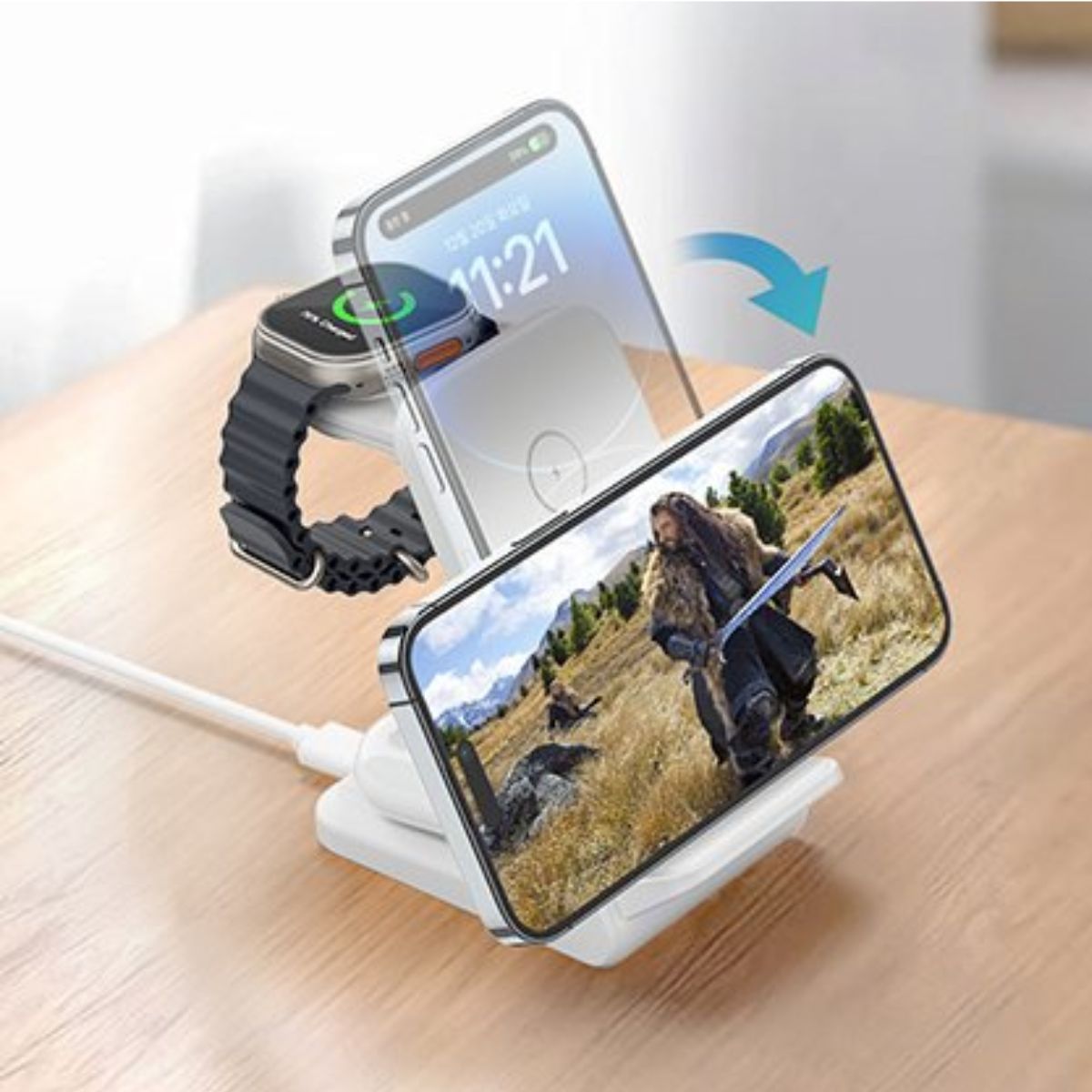 Dock Sạc Cao Cấp Không Dây WIWU Triple 3in1 W001 - Sạc Nhanh, Tiện Lợi, Sang Trọng Sạc không dây 3 trong 1, gấp gọn tiện lợi: WIWU Triple 3in1 W001 là giải pháp sạc