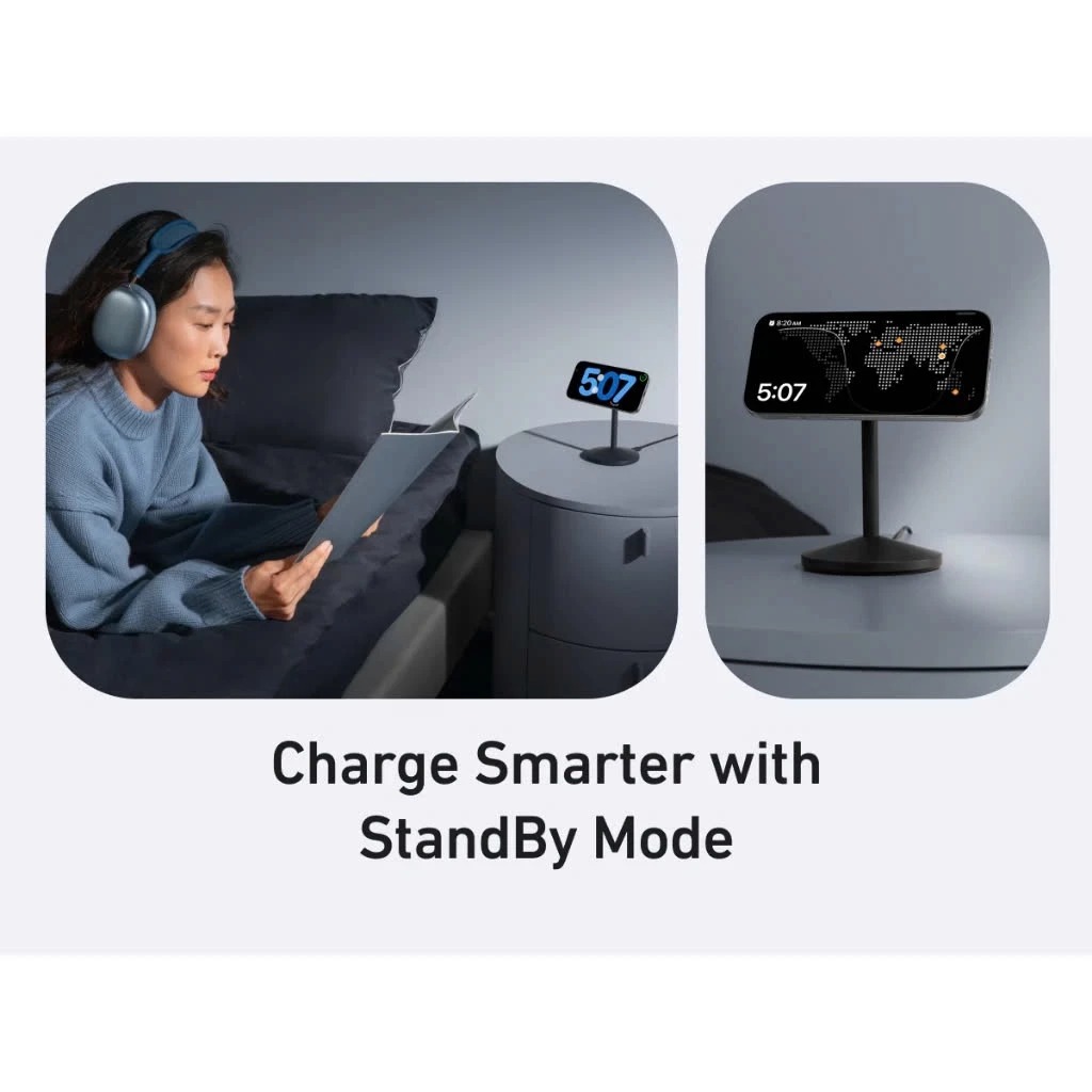 Sạc 15W tương thích với các thiết bị từ tính Trải nghiệm sạc nhanh với công suất đầu ra không dây 15W tương đương với hiệu suất của công nghệ từ tính. Sạc rảnh tay Chân đế tích hợp đảm bảo bạn có thể xem, làm việc hoặc chơi trong khi thiết bị đang sạc, hoàn toàn rảnh tay. Xoay 360° với bề mặt sạc có thể điều chỉnh Bộ sạc không dây có cơ chế xoay 360° được cấp bằng sáng chế để thay đổi hướng liền mạch và độ nghiêng có thể điều chỉnh để có góc nhìn hoàn hảo. Tai nghe không dây cũng có thể được sạc Tấm sạc có thể được điều chỉnh theo chiều ngang của bàn làm việc. Bạn cũng có thể sạc các thiết bị không có từ tính như tai nghe không dây.