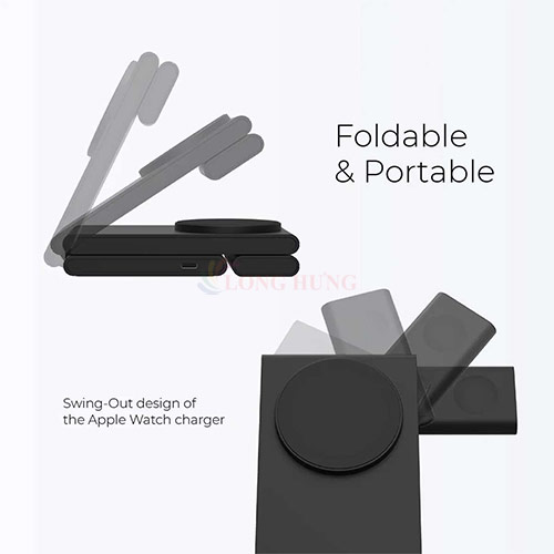 -  Sạc 3 trong 1 sạc cùng lúc iP, Ap Watch, AirP tiện lợi -  Công nghệ Qi2 MagS tương thích iP 12, 13, 14, 15 sạc nhanh hơn -  Sạc không dây 15W tối ưu tốc độ sạc an toàn, hiệu quả -  Thiết kế nam châm mạnh hít chặt, giữ thiết bị cố định chắc chắn -  Gập gọn siêu di động dễ dàng mang theo, tiện lợi khi di chuyển