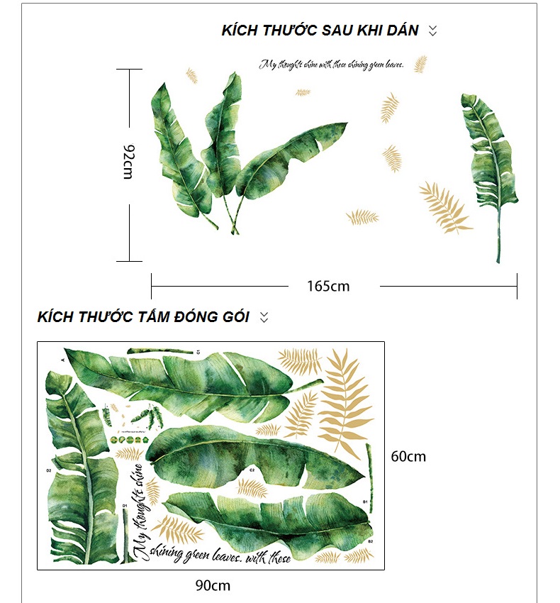 Video Giải thích quy cách đóng gói và cách dán sản phẩm Decal dán tường lá cây SK9239 Kích thước sản phẩm khi đóng gói :01 tấm 60*90 cm Kích thước sau khi dán :