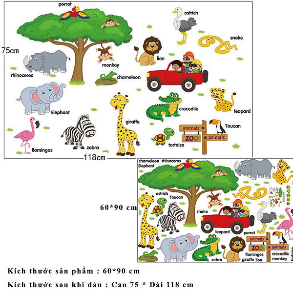 Kích thước :Decal dán tường từ tiếng anh về loài vật cho bé SK9084