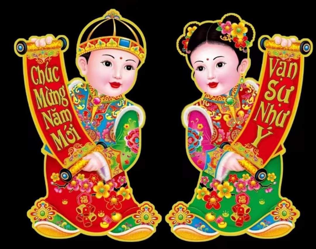 Hình Kim đồng ngọc nữ dán Tết chỉ từ 15k