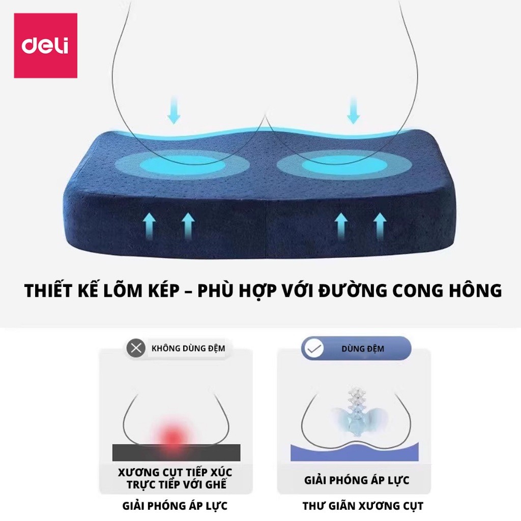 Tên sản phẩm: Đệm ngồi Deli nệm lót ghế cao su non siêu đàn hồi chống trĩ chống đau ê mông êm ái giúp ngồi thoải mái cả ngày tiện dụng