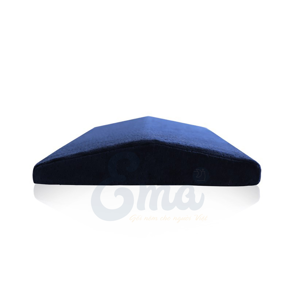 CÔNG DỤNG CỦA ĐỆM THẮT LƯNG EMA Đệm thắt lưng Ema giúp lấp đầy những khoảng trống của cơ thể được tạo ra khi bạn nằm ngủ: vùng eo, vùng khoeo chân. Các khoảng trống này được tạo ra theo đường cong cơ thể con người, khi nằm xuống sẽ khiến các vùng thắt lưng hay khoeo chân chịu các lực không bình thường Kê thắt lưng giảm đau cho các trường hợp bị tổn thương cột sống thắt lưng: người bị thoát vị đĩa đệm, thoái hóa đốt sống lưng, người cao tuổi bị các vấn đề xương khớ Kê thắt lưng cho bà bầu - đối tượng bị đau thắt lưng do sức nặng của bào thai gây nên Kê khoeo chân giảm căng cơ, tạo cảm giác thư giãn, thoải mái MÔ TA CHI TIẾT ĐỆM THẮT LƯNG EMA Thiết kế:  Đệm lưng Ema được thiết kế theo hình tam giác cân với chiều cao 4cm. Đây là thiết kế chuyên biệt giúp đệm lấp đầy khoảng trống ở dưới phần thắt lưng. Và tại sao điều này lại quan trọng đến thế? Đường cong sinh lý của cột sống là đường cong cột sống ở người bình thường. Ở người bình thường thì khi nhìn cột sống từ bên thì cột sống uốn cong theo đường cong cơ thể, hơi cong về phía trước ở phần cột sống thắt lưng. Chính điều này làm cho khi ngủ (đặc biệt khi nằm nghiêng) sẽ tạo ra khe hở, cột sống thắt lưng ở trạng thái treo cong. Đối với những người thường xuyên mang vác vật nặng, làm việc cúi người hoặc người thoát vị đĩa đệm tư thế này sẽ gây đau, mỏi vùng thắt lưng Ảnh minh họa: Đệm giúp nâng đỡ thắt lưng từ đó giữ cột sống cong theo đường cong sinh lý tự nhiên Đệm thắt lưng Ema với thiết kế theo công thái học cột sống giúp người sử dụng "lấp đầy" vùng hẫng này, từ đó giải phóng áp lực lên cột sống thắt lưng, giúp cột sống luôn theo đường cong sinh lý của cơ thể (trạng thái tự nhiên nhất) Điểm nổi bật:  Không giống như các loại gối đệm thắt lưng thông thường, đệm thắt lưng Ema có chiều rộng vượt trội giúp người sử dụng xoay trở thoải mái khi nằm. Từ đó giúp người sử dụng thư giãn, không phải chịu các cơn đău thắt lưng, thoải mái xoay trở dù nằm ngửa hay nằm nghiêng.  Kích thước: Dài 24cm - vừa khít vào vùng thắt lưng. Rộng 60cm - rộng hơn tất các các loại gối, đệm thắt lưng truyền thống giúp người dùng thoải mái xoay trở, không sợ bị trượt ra khỏi gối. Cao 4cm - chiều cao tiêu chuẩn phù hợp với vóc dáng người Việt, vừa khít vào vùng cong của thắt lưng Vỏ gối: Gối được thiết kế gồm 2 lớp vỏ có khóa kéo giúp tiện lợi trong việc tháo giặt vệ sinh. Vỏ ngoài được làm từ vải nhung co giãn 4 chiều, trên mặt có hàng trăm lỗ nhỏ giúp điều hòa không khí. Vỏ lót móng hơn được làm từ vải mắt chim siêu thoáng Ruột gối: Được làm từ 100% cao su non với đặc tính đàn hồi chậm, giúp lấp đầy một cách êm ái vùng thắt lưng khi bạn nằm lên, từ đó giảm áp lực và giảm đau lên khu vực này.  Memory Foam (cao su non) với đặc tính chậm đàn hồi là vật liệu do trung tâm vũ trụ NASA phát minh vào năm 1966 nhằm nâng cao sự an toàn cho các phần nệm của thiết bị bay nhằm giảm thiểu tối đa áp lực tác động lên các phi hành gia và rung chấn trong quá trình phóng tàu vũ trụ. Ngày này chất liệu này được sử dụng rất nhiều trong ngành công nghiệp gối - đệm   Ảnh minh họa: Dùng trứng sống ấn lên đệm - trứng không hề vỡ do đệm đã phân tán gần hết áp lực gây ra Ảnh thực tế sản phẩm: Màu sắc: gối có 2 màu trung tính phù hợp với cả nam, nữ tất cả các độ tuổi là Xanh và Xám