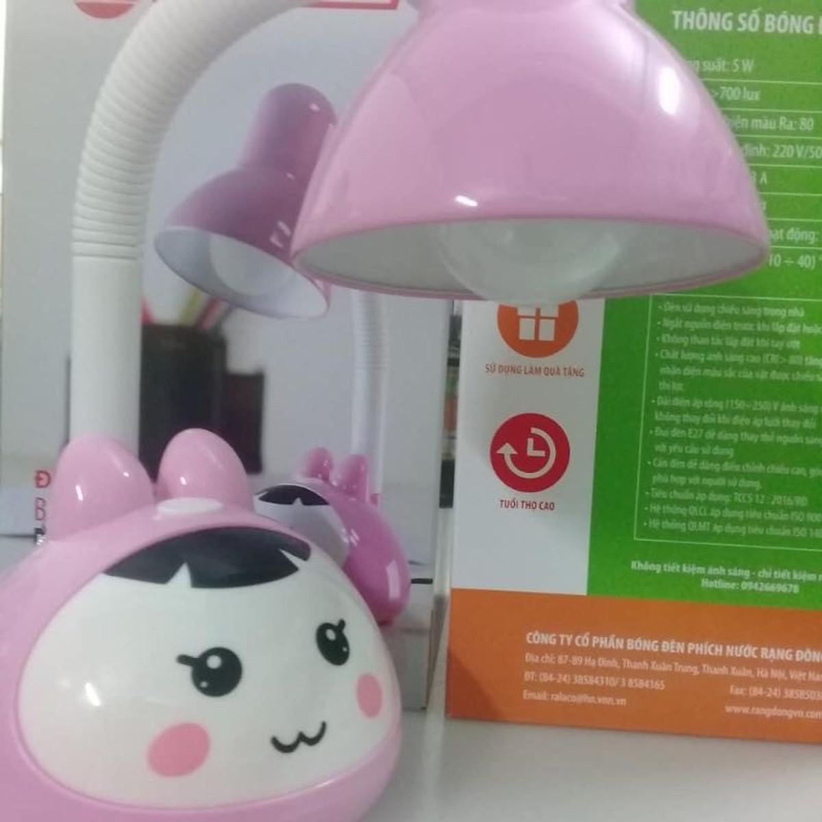 Đèn Bàn Rạng Đông Chống Cận LED 5W • Model: • Công suất: 5W/7W • Điện áp: 220V/50Hz • Nhiệt độ màu: 6500K (Trắng)/ Vàng(3000K)/ Đổi 3 màu ánh sáng • Màu đèn: Xanh/ Hồng