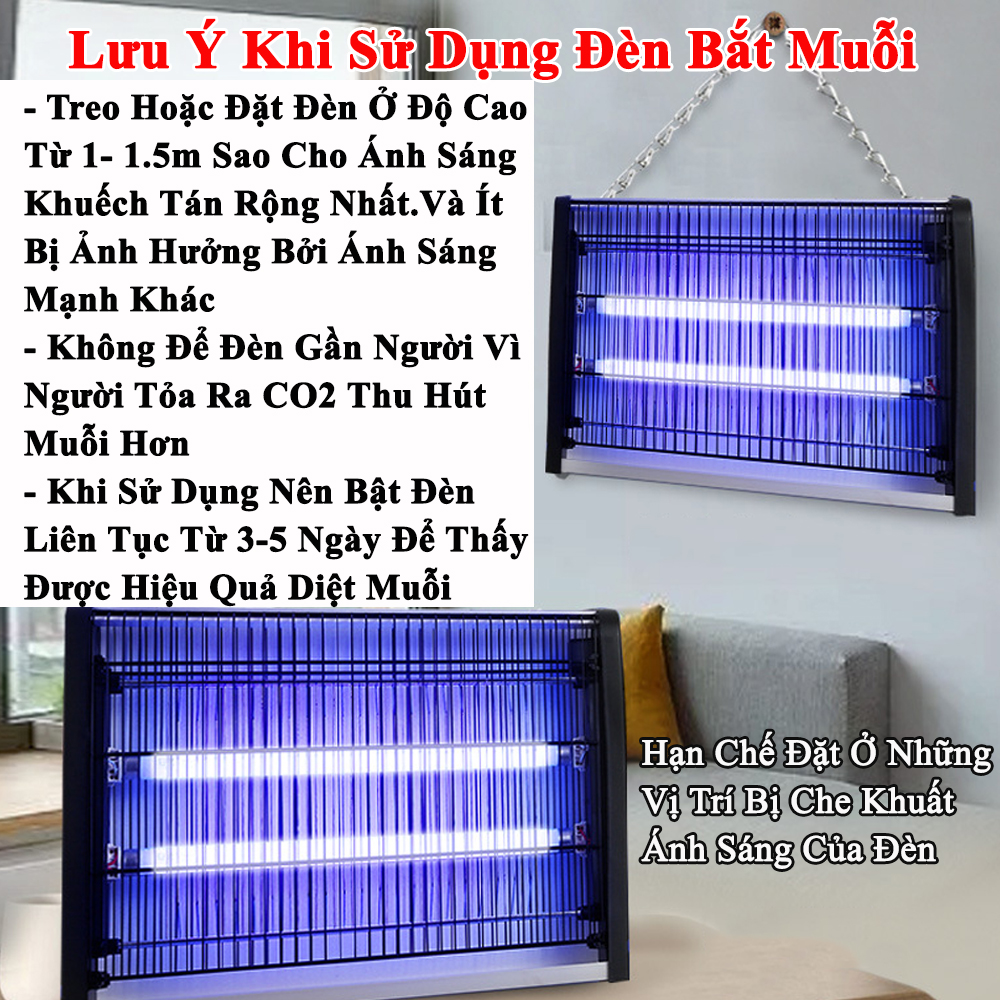 - Không nên sử dụng đèn quá gần người, vì người dễ thu hút muỗi hơn đèn, làm giảm hiệu quả bắt muỗi.