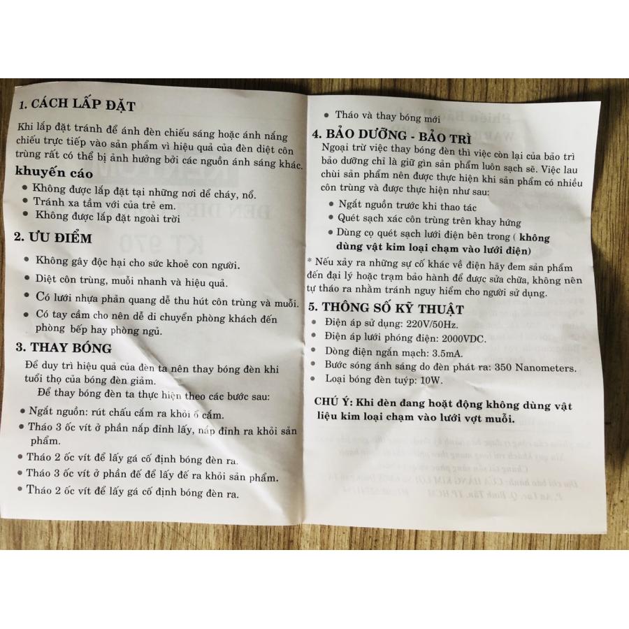 - ĐÈN DIỆT MUỖI VÀ CÔN TRÙNG KENTOM KT970. KHÔNG GÂY ĐỘC HẠI, DIỆT CÔN TRÙNG HIỆU QUẢ, LƯỚI PHẢN QUANG DẼ THU HÚT CÔN TRÙNG VÀ MUỖI, CÓ LƯỚI BẢO VỆ AN TOÀN
