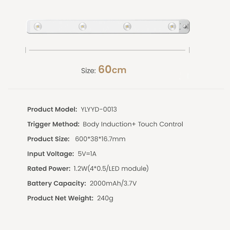 Độ dày của đèn cảm ứng Yeelight chỉ 1.6cm cùng lớp vỏ ngoài được làm bằng kim loại, tạo cảm giác chắc chắn cho người dùng. Thanh đèn hình chữ nhật cùng mắt cảm biến được đặt phía trên, giúp đèn hoạt động nhanh nhạy dù nó được lắp đặt ở đâu. Hơn hẳn một số loại đèn cảm ứng khác, thiết bị của Yeelight có thể sạc Pin với thời lượng sử dụng lâu dài. Bên cạnh của đèn sẽ là vị trí của cổng sạc type-C cùng nút vật lý điều khiển chế độ đèn, tùy theo nhu cầu sử dụng.