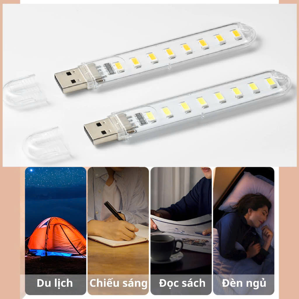 - Đèn LED USB 8 mắt LED: 10.1 x 1.8 x 0.9 cm