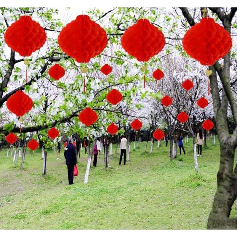 Đèn lồng tổ ong đỏ trang trí