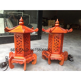 Đèn thờ gỗ hương cao 40cm, luồn sẵn dây và bóng