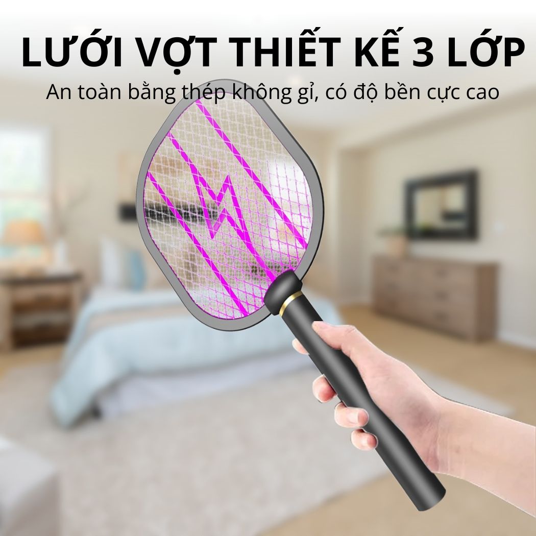 VỢT MUỖI, ĐÈN BẮT MUỖI VỢT MUỖI THÔNG MINH 3IN1 Vợt Muỗi Thông Minh Tự Động, Kết Hợp Đèn Bắt Muỗi, Sạc Tích Điện Đa Năng Có Đế Để Bàn Tiện Lợi THÔNG