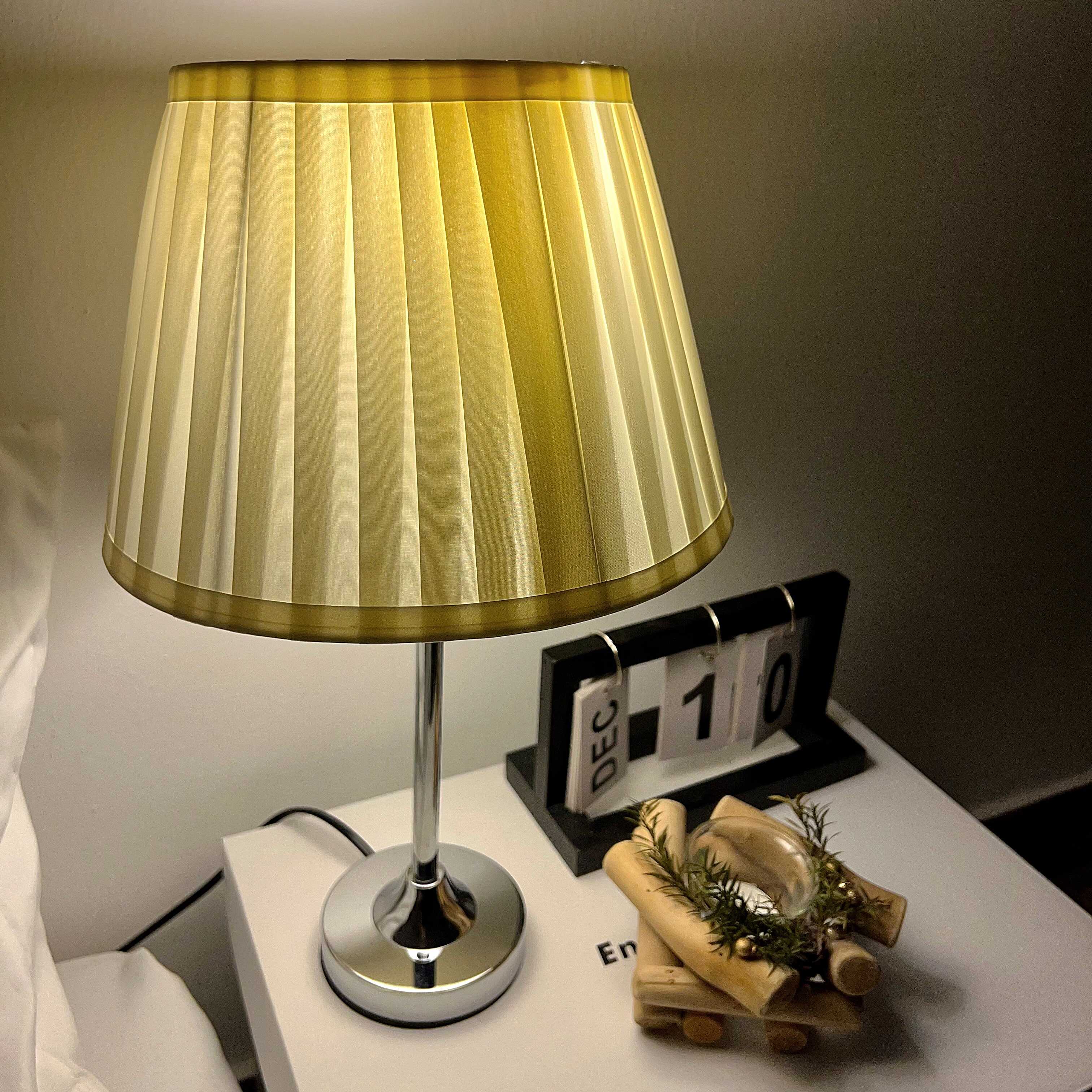 ️ Chất liệu: Chao đèn bảng vải Fabric + Thân đèn bằng kim loại mạ sơn chống rỉ ️ Màu sắc: bạc ️ Kích thước:( chiều dài thân x đường kính chao đèn x chiều cao tổng): 23 x 25 x 40 (cm) ️ Thông số bóng: Bóng đèn LED max 3W ánh sáng 3000K đui E27 (loại bóng này mới sử được với dây chỉnh sáng, bóng LED tiết kiệm điện, an toàn cho mắt) ️ Loại công tắc: công tắc điều chỉnh sáng SIÊU TIỆN LỢI ->> Sản phẩm không có sẵn bóng đèn, L.art tặng kèm 1 bóng đèn ánh sáng vàng trung tính cho khách hàng những trải nghiệm tốt nhất và sản phẩm. Đèn được đóng gói thùng xốp cẩn thận để đảm bảo đèn và chụp đèn bạn nhận được 100% hoàn hảo như hình