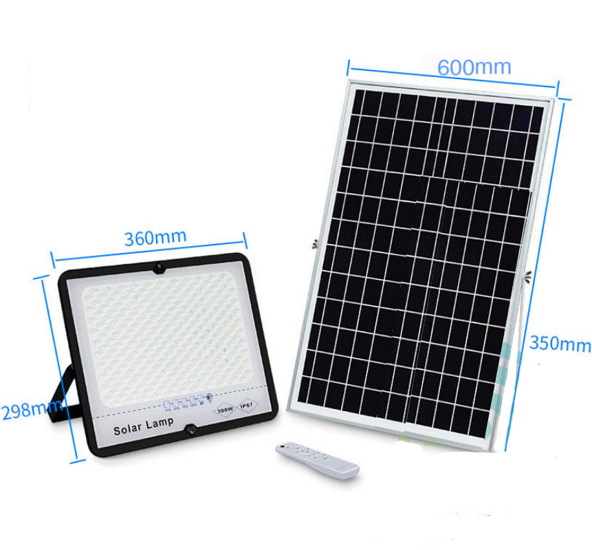 Đèn led pha năng lượng mặt trời 300w - chip leds sáng vô địch, nhiều led nhất. IP67 Tấm pin Kích thước tấm pin: 530 x 350 x 17 mm, siêu to. * Thiết kế