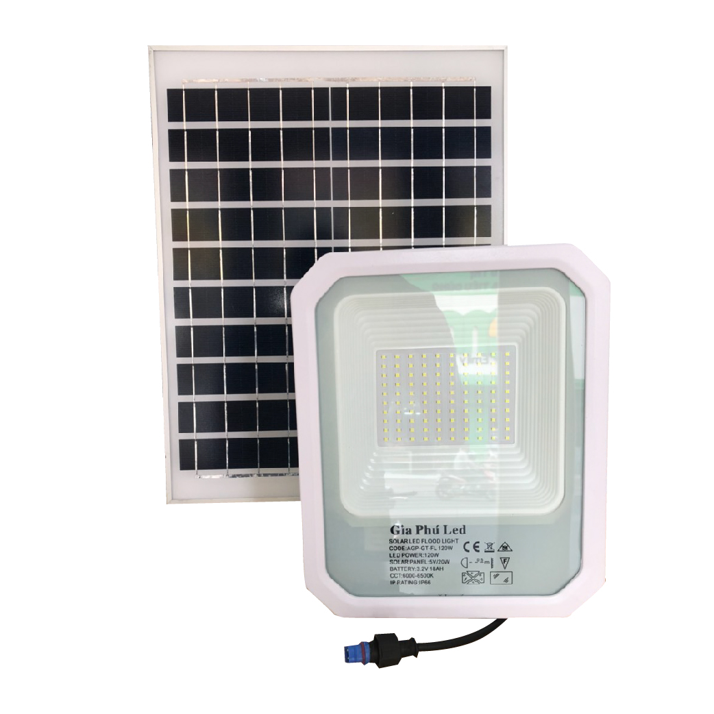 Tấm năng lượng: Polysilicon Panel 5V/20W Pin: 3.2V 18000Mah Kích thước đèn: 28523060mm Kích thước tấm năng lượng: 46035025mm Số lượng LED Chip: 100 chip SMD Espistar Quang thông: 90-100 Lm/w Chiều dài sợi cáp: 5 mét Ánh sáng: Trắng Nhiệt độ làm việc: -25- +55 độ C Chỉ số bảo vệ: IP65 Thời gian sạc pin: 6-8 giờ Thời gian thắp sáng: 12-15 giờ Vùng thắp sáng: 100 m2 Cảm biến sensor: Light control + remote control + time control Vật liệu: Die-Alu-TG Màu vỏ đèn: Trắng