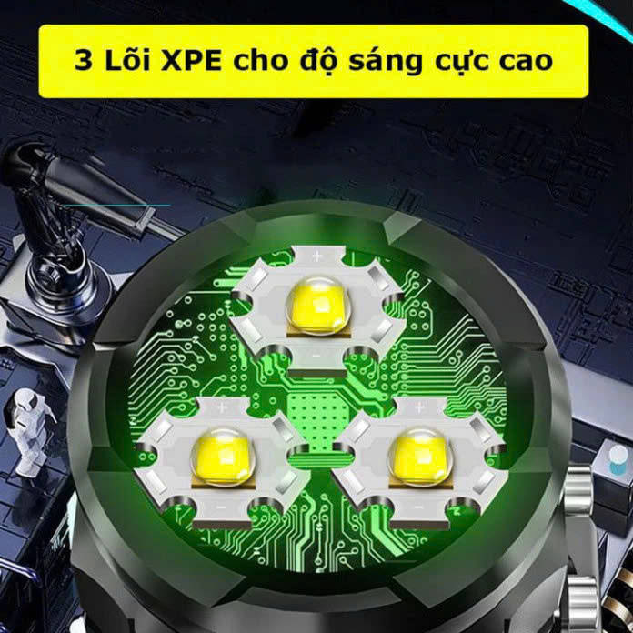 Đèn Super Light 3 Đầu: Sản phẩm được thiết kế tiện dụng, thông minh và gọn nhẹ có phạm vi chiếu sáng cực kì ấn tượng, bạn có thể sử dụng đèn pin để sửa