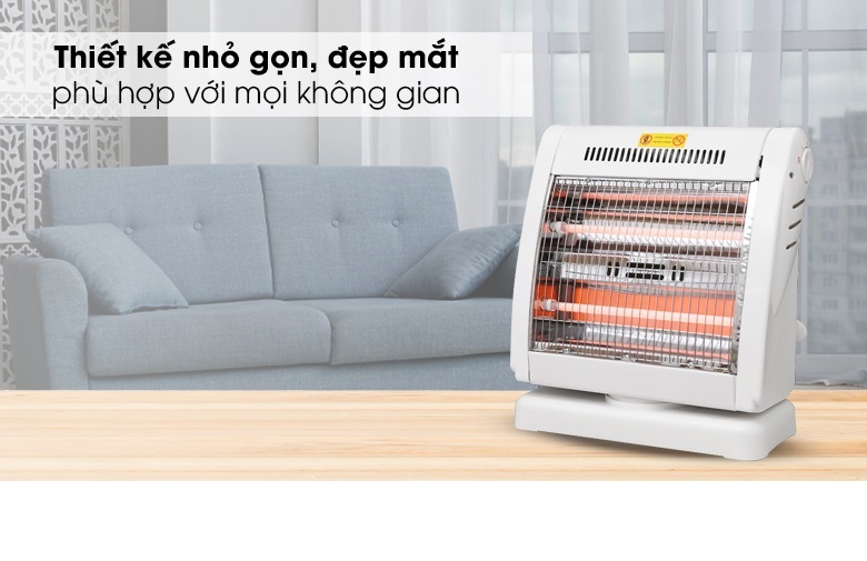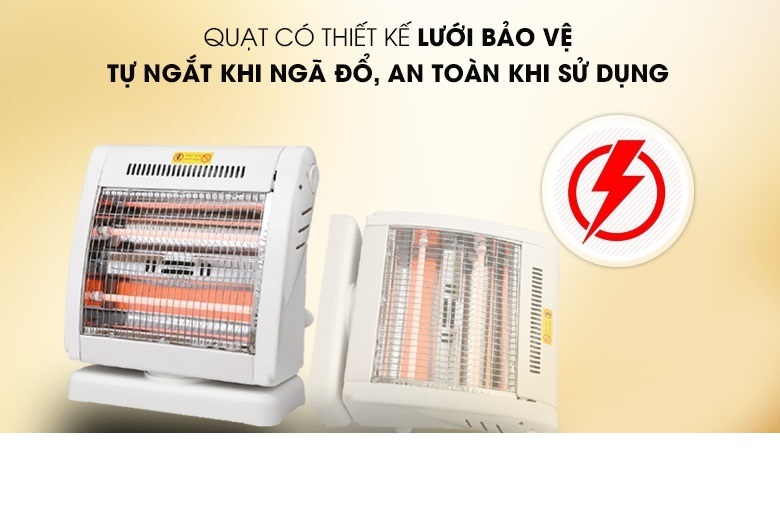 - Tự động ngắt điện khi quạt bị nghiêng hay đổ Đèn Sưởi Điện Halogen FUJIKA FJ-SNV1 - Hàng Chính Hãng là một trong những thiết bị sưởi ấm không thể thiếu tại gia đình trong mùa đông. Sản phẩm sử dụng đèn Halogen, tỏa nhiệt đều, làm ấm nhanh, không gây khó thở và khô da, đảm bảo an toàn cho người sử dụng. Kiểu dáng sang trọng, hiện đại Đèn Sưởi Điện Halogen FUJIKA FJ-SNV1 - Hàng Chính Hãng có thiết kế sang trọng hơn, kiểu dáng hiện đại và bắt mắt, nhỏ gọn tiết kiệm diện tích và phù hợp mọi không gian như phòng khách, phòng ngủ, Điều khiển dễ dàng bằng nút xoay Đèn Sưởi Điện Halogen FUJIKA FJ-SNV1 - Hàng Chính Hãng có 2 mức công suất 400W, 800W điều chỉnh bằng núm vặn linh hoạt theo 2 chiều giúp bạn dễ dàng lựa chọn được mức nhiệt phù hợp với môi trường và nhu cầu sử dụng. Chắc chắn, bền đẹp, an toàn Đèn Sưởi Điện Halogen FUJIKA FJ-SNV1 - Hàng Chính Hãng có chân đế vững chãi, lưới bảo vệ, tránh gây bỏng cho người dùng. Đặc biệt, lồng và vỏ nhựa phía sau chống cháy tuyệt đối, lưới tản nhiệt giúp sản phẩm không bị hư hỏng do quá nóng. TỎA NHIỆT ĐỀU, KHÔNG GÂY KHÔ DA Làm ấm cực nhanh, không gây khô da Đèn Sưởi Điện Halogen FUJIKA FJ-SNV1 - Hàng Chính Hãng sử dụng đèn halogen, làm ấm cực nhanh, độ bền vượt trội, chống chói mắt hiệu quả và không đốt cháy oxy nên không gây khó thở hay khô da khi dùng. Quay đảo chiều, tỏa nhiệt đều khắp phòng Sản phẩm có khả năng quay đảo chiều liên tục, giúp tỏa nhiệt đều khắp phòng, rất thích hợp khi sử dụng tại không gian rộng như phòng khách hoặc phòng có nhiều người. An toàn với người sử dụng Đèn Sưởi Điện Halogen FUJIKA FJ-SNV1 - Hàng Chính Hãng có chế độ tự động ngắt điện khi bị nghiêng đổ và hoạt động trở lại bình thường trở lại trạng thái an toàn. Thông số kỹ thuật