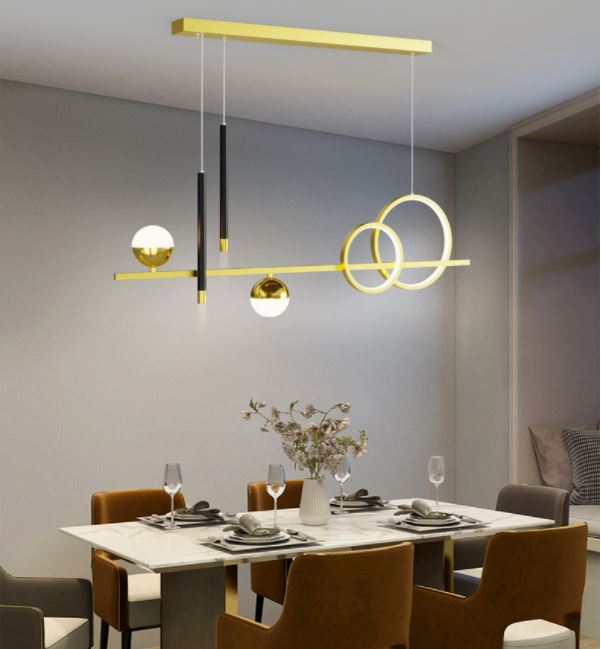Thông qua việc trang trí nội thất của không gian có thể biết phần nào tính cách và con mắt nghệ thuật của chủ nhà. Bởi vậy những vật dụng trang trí nội thất luôn được người dùng lựa chọn cực kỳ cẩn thận. Đặc biệt là thiết bị chiếu sáng lại càng được chú trọng vì đây chính là sản phẩm cần thiết trong mọi không gian. Mỗi loại đèn lại có những ưu điểm và thiết kế khác nhau đem đến cho người dùng những cảm nhận khác biệt. Đèn thả hiện đại là một trong số các loại đèn độc đáo và mới lạ giúp không gian ngôi nhà bạn trở nên tươi mới hơn. THÔNG TIN SẢN PHẨM: Màu sắc: Đen, Vàng Thân đèn làm bằng sắt cứng và quy trình sơn tinh tế, bền và sáng màu, chống ăn mòn, chống gỉ và chống trầy xước. Đế bắt trần chịu lực bền và chắc chắn, chống gió và chống rỉ sắt, khả năng chịu lực mạnh. Vòng kim loại dày làm bằng phần cứng chất lượng cao được sơn ở nhiệt độ cao màu sắc tươi sáng. Chụp đèn silicon có độ truyền ánh sáng cao, truyền ánh sáng đồng đều, ánh sáng dịu, dễ lau chùi. Chíp led tích hợp không nhấp nháy, tuổi thọ cao bảo vệ sức khẻo và đôi mắt của gia đình bạn. Kích thước sản phẩm: 100x70(cm) Ứng dụng: phòng ăn, phòng khách, khách sạn, Công nghệ chiếu sáng hiện đại của bóng đèn led giúp cho đèn bàn ăn đẹp cung cấp ánh sáng đều màu, ổn định trong khoảng diện tích từ 10-35 m2 mà không bị chập chờn, chớp nháy gây ảnh hưởng đến thị giác người nhìn. Hơn nữa, chúng còn làm nổi bật lên vẻ đẹp của các món ăn từ đó thu hút các thành viên trong gia đình quây quần lại thưởng thức. Không chỉ đóng vai trò cung cấp ánh sáng, Đèn thả trang trí còn là vật dụng làm nổi bật lên phong cách nội thất của không gian. Tại mỗi không gian, các bạn cũng nên biết cách bày trí sao cho đạt hiệu quả thẩm mỹ cao nhất. Đèn thả giúp mang lại những điều vui vẻ, hạnh phúc trong căn hộ của bạn. Chính vì thế nhiều gia đình lựa chọn lắp đèn thả trong phòng ngủ vừa tạo không gian ấm áp, lãng mạn. Vừa giúp tăng sự gắn kết trong hạnh phúc gia đình.
