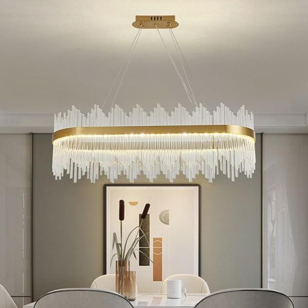 Sự kết hợp với pha lê làm cho đèn thả càng trở lên đắt giá hơn. Ngay cả khi không thắp đèn thì ánh sáng của thiên nhiên cũng làm toát lên được vẻ sang trọng và cuốn hút. Chiếc đèn hiện lên lung linh màu sắc của sự giàu sang quyền quý. Đây chắc chắn sẽ là sự lựa chọn tốt nhất cho căn phòng hiện đại đẳng cấp của bạn.