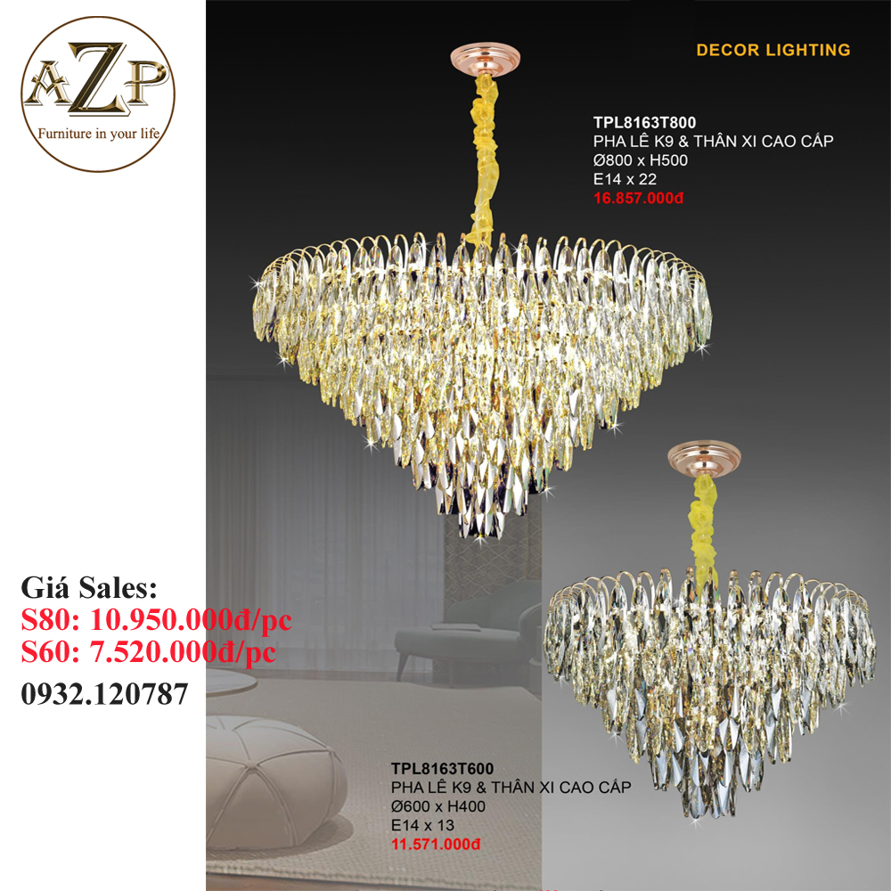 ĐÈN THẢ TRẦN PHA LÊ / ĐÈN THÔNG TẦNG TRANG TRÍ PHÒNG KHÁCH / PHÒNG NGỦ / CẦU THANG / KHÔNG GIAN SANG TRỌNG AZP-8163 phong cách đương đại, hàng nhập khẩu AZP
