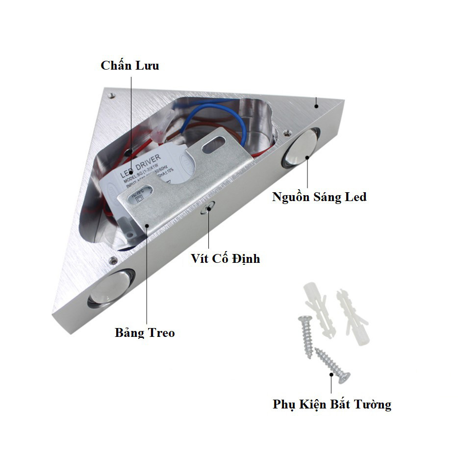 - 5 Mắt Led : 235 x 165 x 30mm Chất liệu : Hợp Kim Nhôm Màu sắc : Đen ; Đen Bạc Ánh Sáng Trắng / Vàng / Nhiều Màu Góc chùm 120 độ Tuổi thọ : 50000 giờ Diện tích chiếu sáng : ~ 5 - 10m2 Hướng sáng lên và xuống Sản phẩm chống thấm nước, bền bỉ với thời gian, có thể sử dụng ngoài trời Thông Lượng sáng: 90-100LM/W Đèn tường led hay còn gọi là đèn led gắn tường là một trong những sản phẩm thiết kế đẹp tạo nên điểm nhấn cho không gian nhà bạn. Đèn tường đa phần theo xu hướng và kiểu dáng hiện đại, làm nổi bật không gian xung quanh với ánh sáng vàng tạo cho không gian đầm ấm cho gia đình bạn. Đèn led gắn tường thường sử dụng chất liệu nhôm tĩnh điện với chip led nhập khẩu, cho tuổi thọ chiếu sáng lên tới 50.000h. Ứng dụng Phòng khách, phòng đọc sách, nội thất, nhà bếp, nhà hàng, trung tâm mua sắm, quán cà phê, phòng trưng bày, cầu thang, lối đi,