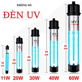 Đèn UV 11W: Chiều dài 26cm, dùng cho hồ dưới 1000 lít.