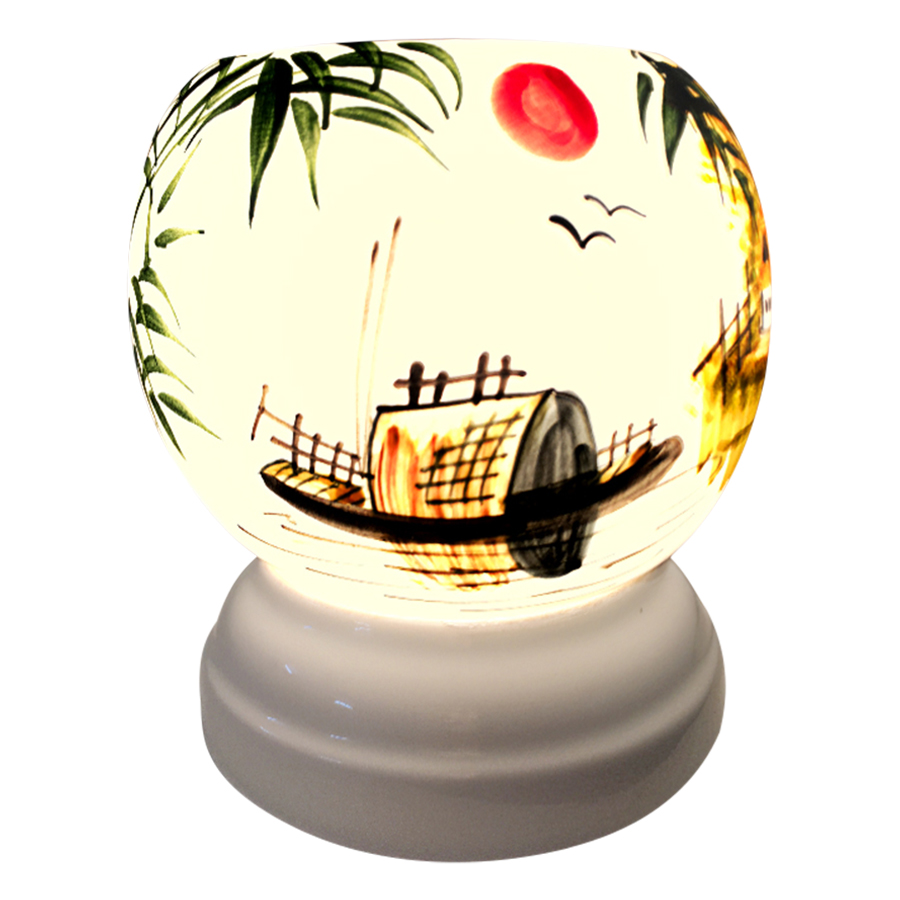 ✨Đèn Xông Tinh Dầu Gốm Bát Tràng Phong Cảnh Thuyền - Hàng Chính Hãng