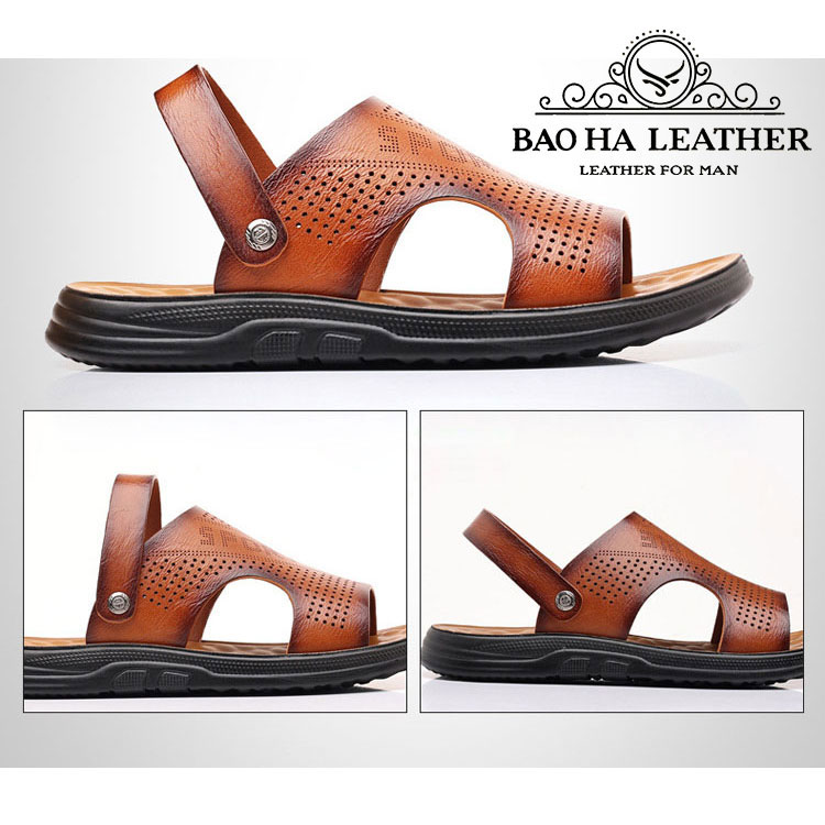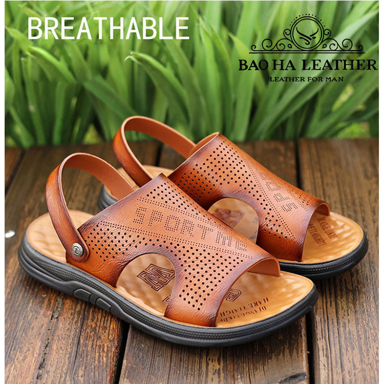 ✨Dép da nam quai ngang đục lỗ thoáng khí BHD888