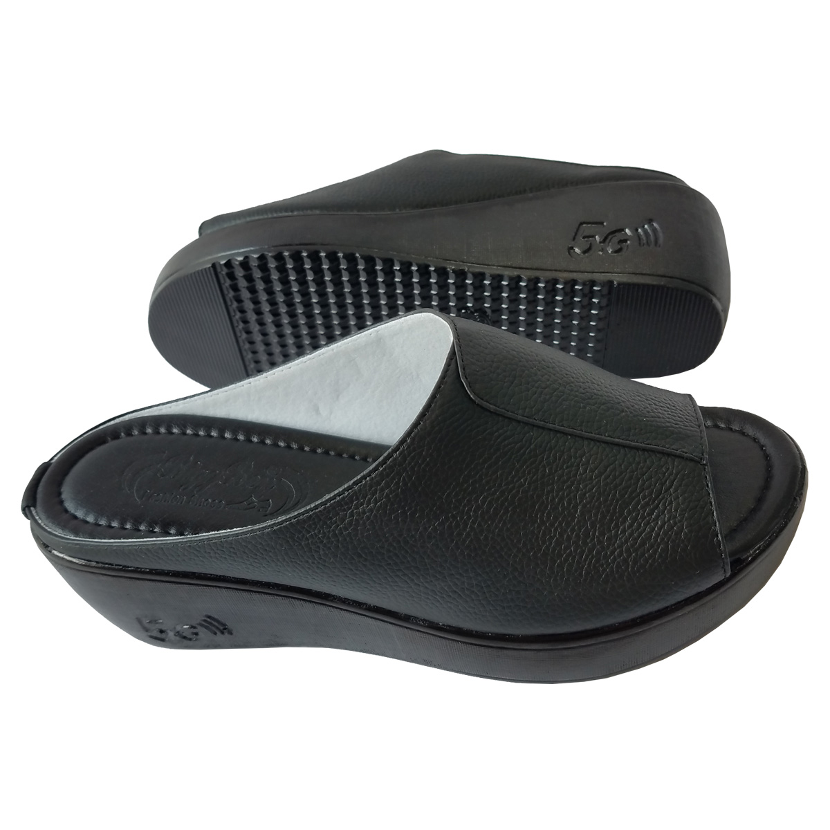 Dép nữ đế xuồng 5cm da bò thật