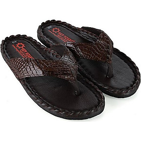 • Tên sản phẩm: Dép nam da cá sấu Huy Hoàng kiểu đan màu nâu đất HT7230