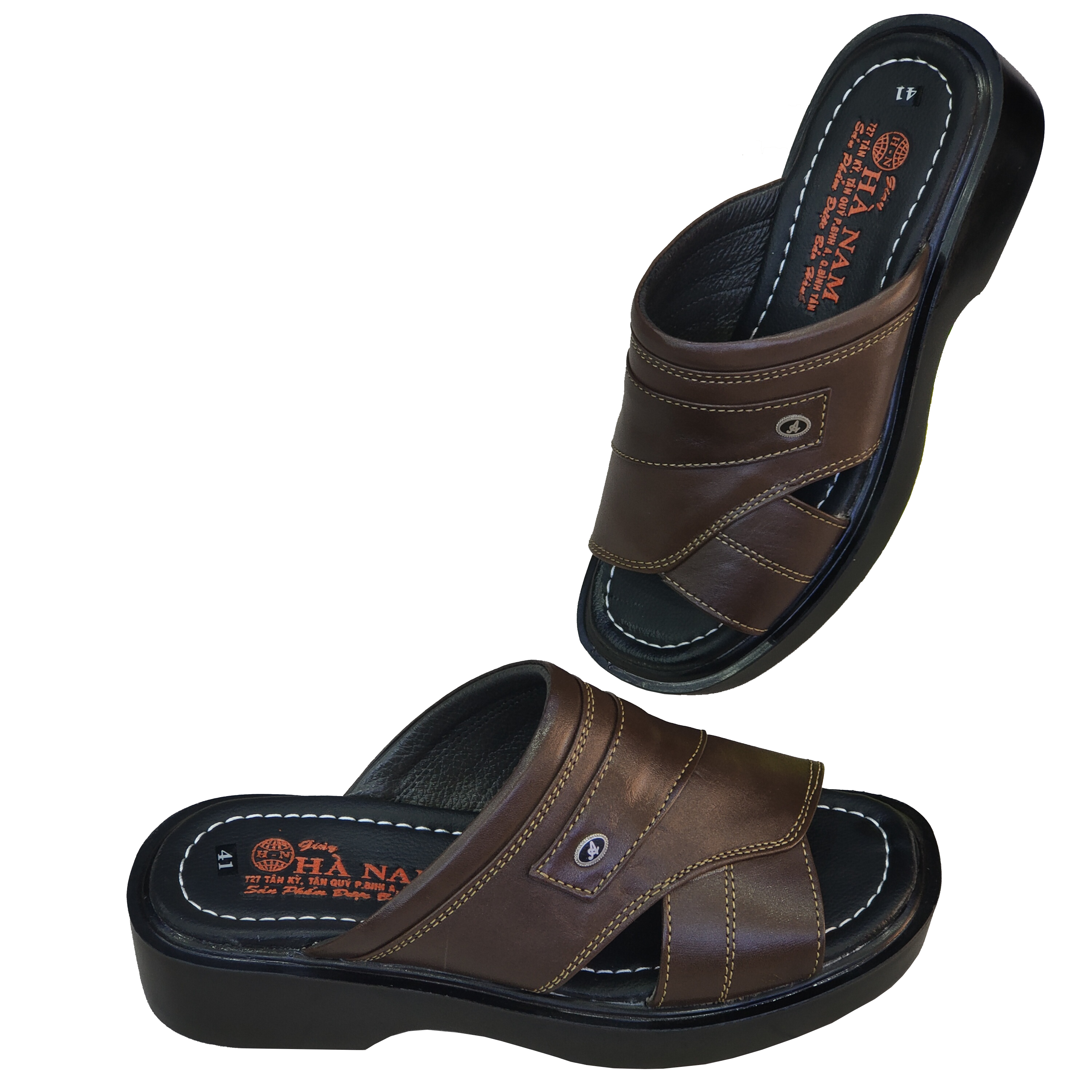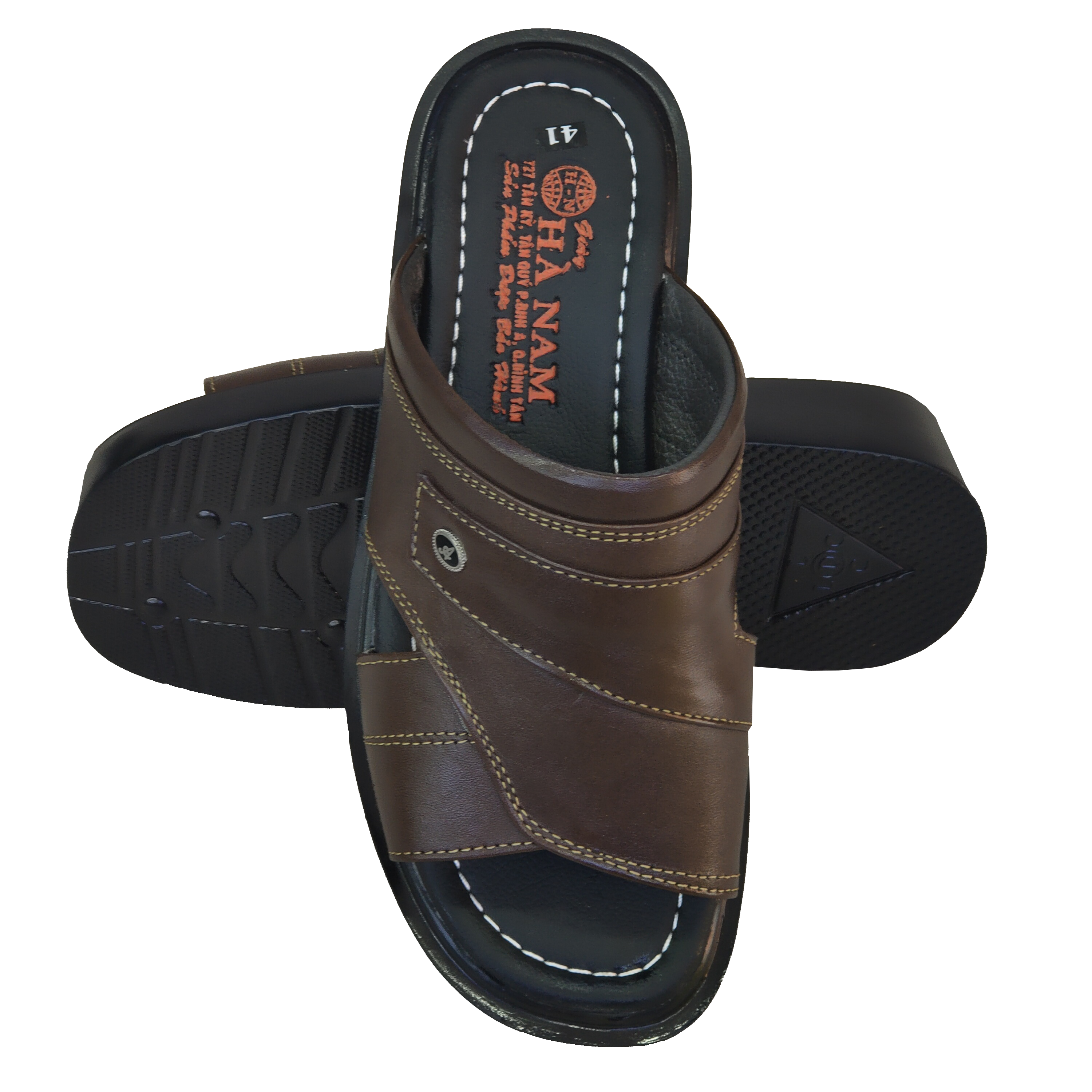 DÉP NAM DA BÒ CAO CẤP - THƯƠNG HIỆU HÀ NAM - Da bò thật, bền đẹp: Dép nam được làm từ 100% da bò thật, mềm mại, thoáng khí, đảm bảo độ bền cao