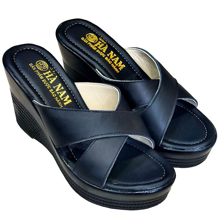 Dép Nữ Quai Chéo Đế Xuồng HÀ NAM Da Bò Thật Cao Cấp 9cm DNU2159 - Giày Dép Được Gia Công Tại Xưởng Shop - Hoàn Trả Tiền 100% Hoặc 1 Đổi 1 Nếu Shop