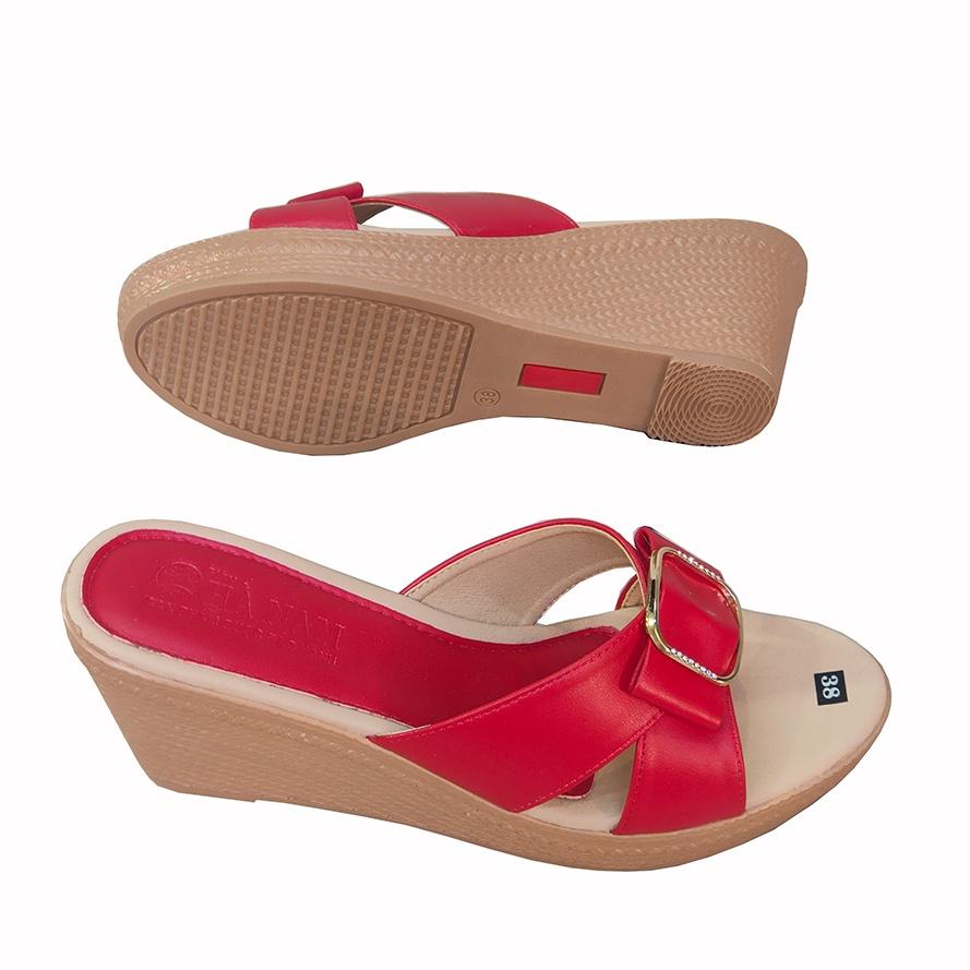 Dép nữ đế xuồng 5cm da bò thật