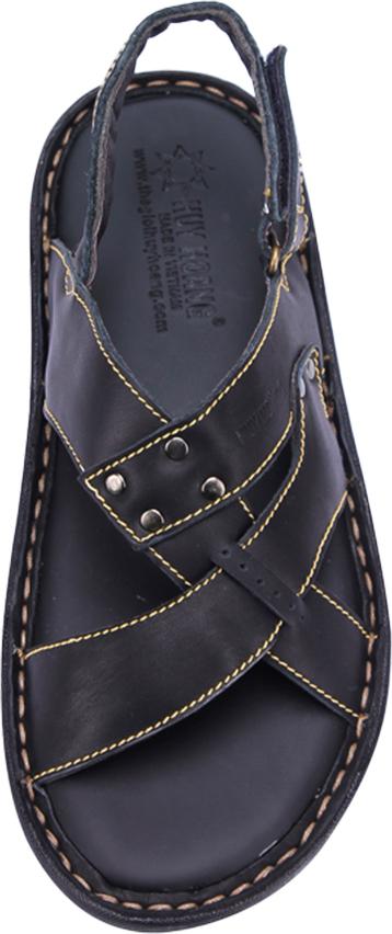 Dép nam Huy hoàng da bò quai hậu màu đen 7145