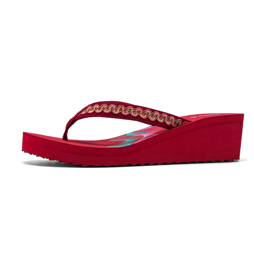 Thiết kế sang trọng: Quai dép được nhấn nhá bằng đường họa tiết ánh kim nổi bật, tôn lên vẻ đẹp nữ tính và tinh tế.