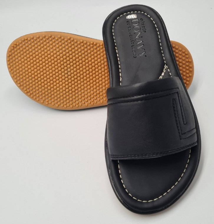 Dép Da Nam - Lịch Lãm & Thoải Mái Mỗi Ngày - Chất liệu cao cấp: Sử dụng da tổng hợp chất lượng, mềm mại, bền bỉ theo thời gian, mang lại cảm giác êm ái và thoáng khí cho bàn chân. - Thiết kế sang trọng: Tông màu đen lịch lãm, kết hợp với đường chỉ may tinh tế và logo kim loại nổi bật – tôn lên vẻ nam tính, trưởng thành. - Đế chống trượt: Đế EVA siêu nhẹ, độ đàn hồi tốt, kết hợp vân đế tăng độ ma sát – an toàn khi di chuyển trên nhiều bề mặt. - Form ôm chân: Thiết kế bản quai ngang rộng, ôm gọn bàn chân nhưng không gây bí bách, dễ xỏ vào – thích hợp cho người trung niên và người lớn tuổi. - Ứng dụng đa năng: Phù hợp sử dụng trong nhà, đi dạo phố, đến văn phòng hoặc các dịp gặp gỡ thân mật. Lựa chọn tuyệt vời cho quý ông yêu thích sự thoải mái, đơn giản nhưng vẫn giữ được nét tinh tế trong từng bước chân.