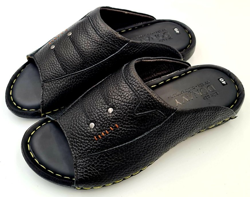 Dép Da Nam - Lịch Lãm & Thoải Mái Mỗi Ngày - Chất liệu cao cấp: Sử dụng da tổng hợp chất lượng, mềm mại, bền bỉ theo thời gian, mang lại cảm giác êm ái và thoáng khí cho bàn chân. - Thiết kế sang trọng: Tông màu đen lịch lãm, kết hợp với đường chỉ may tinh tế và logo kim loại nổi bật – tôn lên vẻ nam tính, trưởng thành. - Đế chống trượt: Đế EVA siêu nhẹ, độ đàn hồi tốt, kết hợp vân đế tăng độ ma sát – an toàn khi di chuyển trên nhiều bề mặt. - Form ôm chân: Thiết kế bản quai ngang rộng, ôm gọn bàn chân nhưng không gây bí bách, dễ xỏ vào – thích hợp cho người trung niên và người lớn tuổi. - Ứng dụng đa năng: Phù hợp sử dụng trong nhà, đi dạo phố, đến văn phòng hoặc các dịp gặp gỡ thân mật. Lựa chọn tuyệt vời cho quý ông yêu thích sự thoải mái, đơn giản nhưng vẫn giữ được nét tinh tế trong từng bước chân.