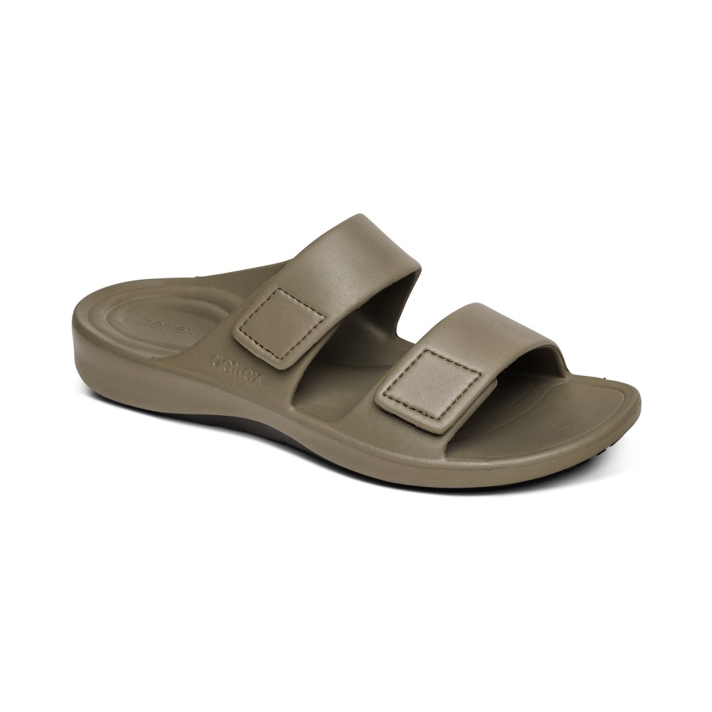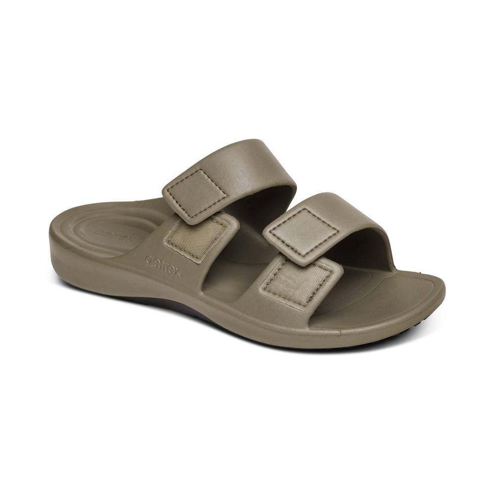 ✨Dép quai ngang sức khỏe nam Aetrex Lynco Milos Army - Dép nâng vòm chân, đế đúc siêu nhẹ