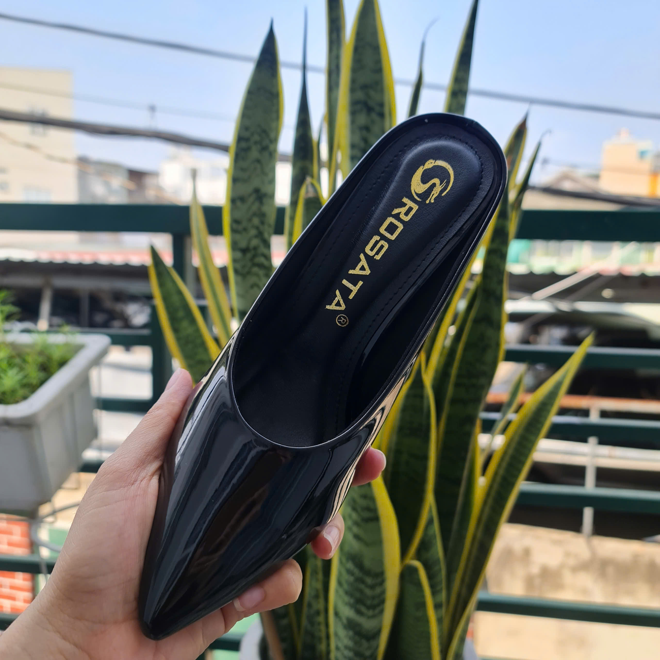 ✨Dép sục cao gót nữ da bóng, gót bạc ROSATA RO672 -7F- Đen - HÀNG VIỆT NAM-BKSTORE