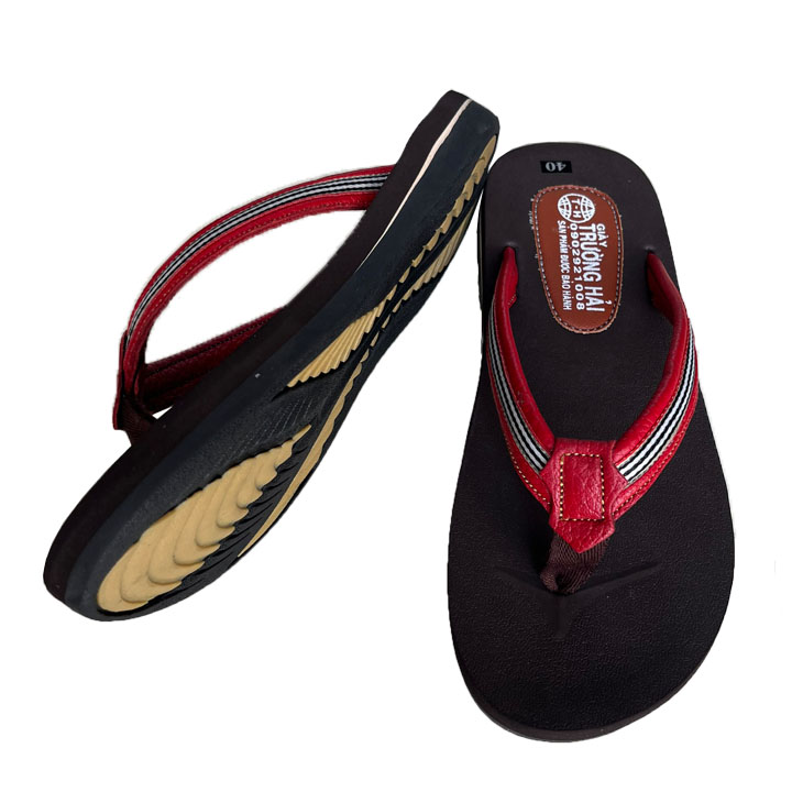 Dép nam xỏ ngón đế âm da bò thật Trường Hải