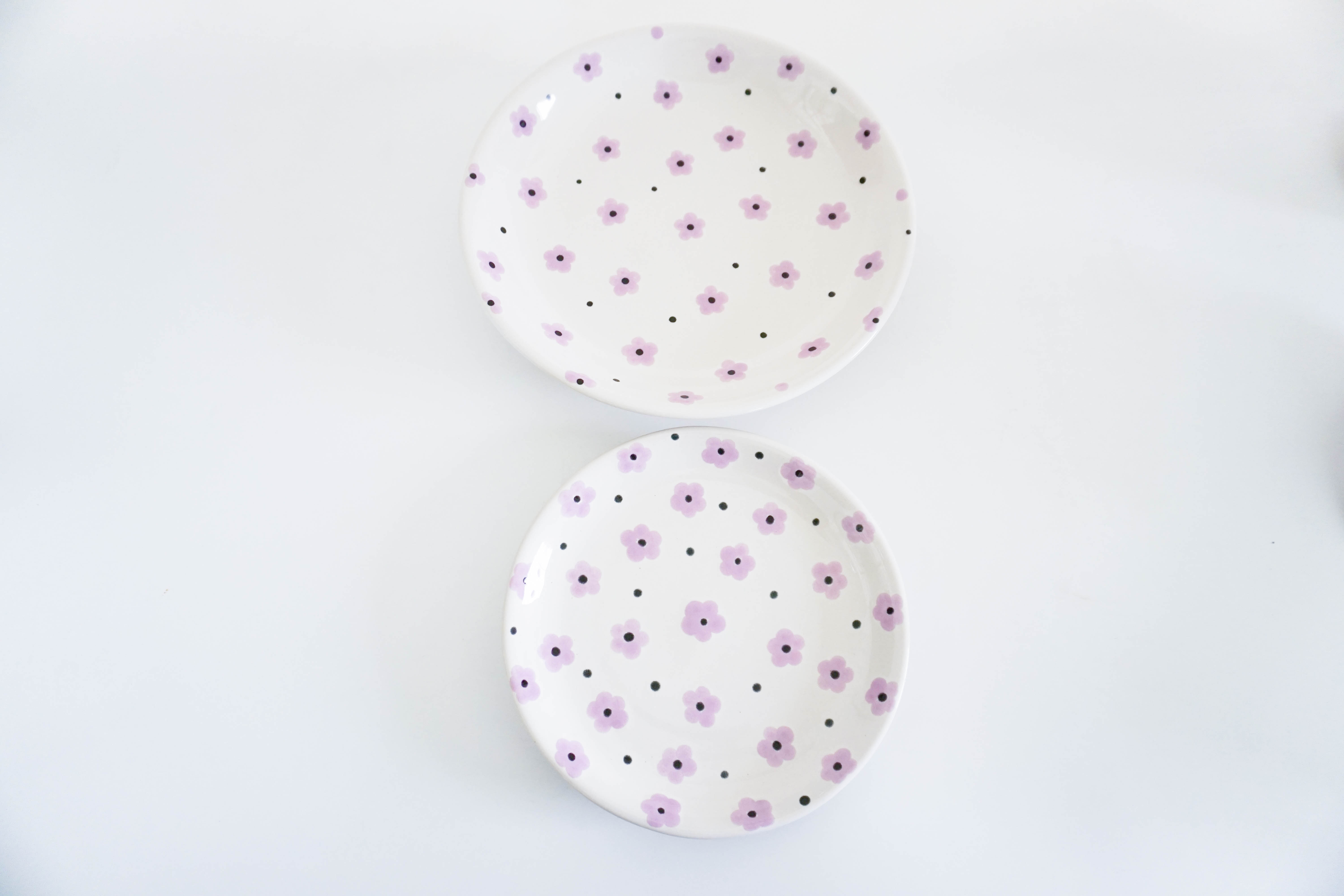 Bộ sưu tập Li Ti của thương hiệu Lina Pottery by Minh Tien Ceramic với men lớp men bóng và họa tiết đẹp mắt bao gồm ly Morning (trung, lớn và đại) và dĩa tròn đi kèm.