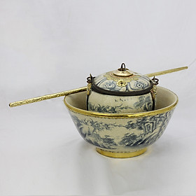 ✨Điếu bát tô men rạn bọc đồng vẽ Sơn Thủy gốm sứ Bát Tràng (điếu hút thuốc lào)