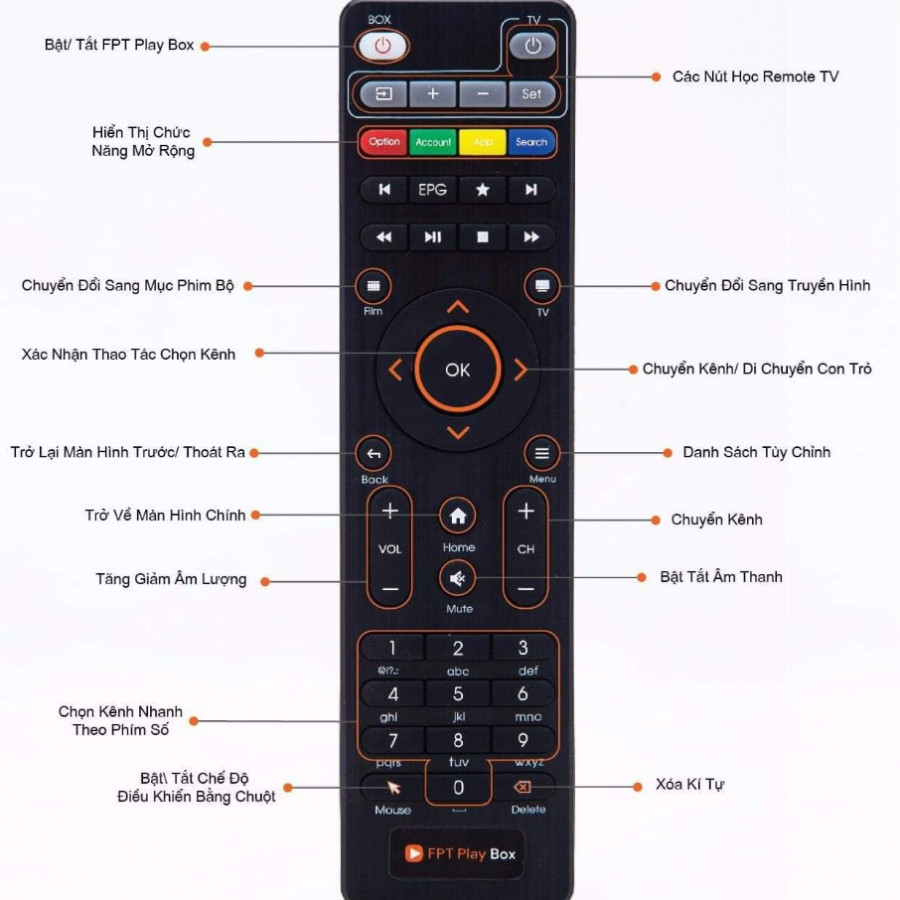 Điều khiển FPT Play Box 2018FPT PLAY BOX 2018phiên bản mới nhất là thiết bị giúp TV của bạn có thể kết nối Internet vàbiến Tivi thường thành một chiếc Smart TVvới những tính năng ưu việt nội dung giải trí phong phú.Thiết bị hỗ trợ hình ảnh chuẩn HD, 4K, chạy trên hệ điều hành Androi và có nhiều cải tiến vượt bậc so với các sản phẩm cùng loại trên thị trường.TÍNH NĂNG NỔI BẬT CỦA FPT PLAY BOXTương thích với mọi nhà mạng Internet, tương thích với mọi Tivi, kết nối Wifi thuận tiện và sử dụng được ở khắp nơi trên thế giới.