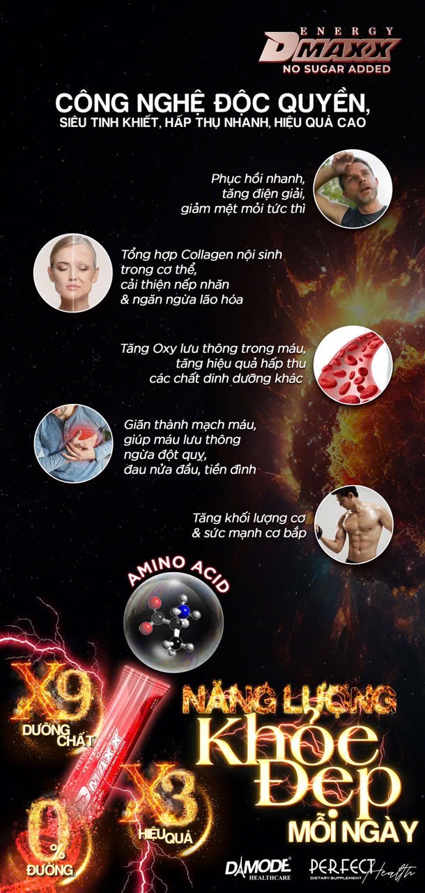 • Thông qua quá trình tổng hợp đi Annie từ đó giúp bảo vệ chức năng tế bào thần kinh. Đồng thời hình thành và tái tạo tế bào hồng cầu;     Hướng dẫn sử dụng thức uống năng lượng Dmaxx   Sản phẩm là một hộp gồm 30 gói . Người dùng sẽ pha một gói Dmaxx  vào 350ml - 500ml nước để sử dụng hằng ngày. Bạn nên lắc đều trước khi uống. Hoặc bạn có thể pha với nước lạnh nếu thích.   Lưu ý khi sử dụng Dmaxx