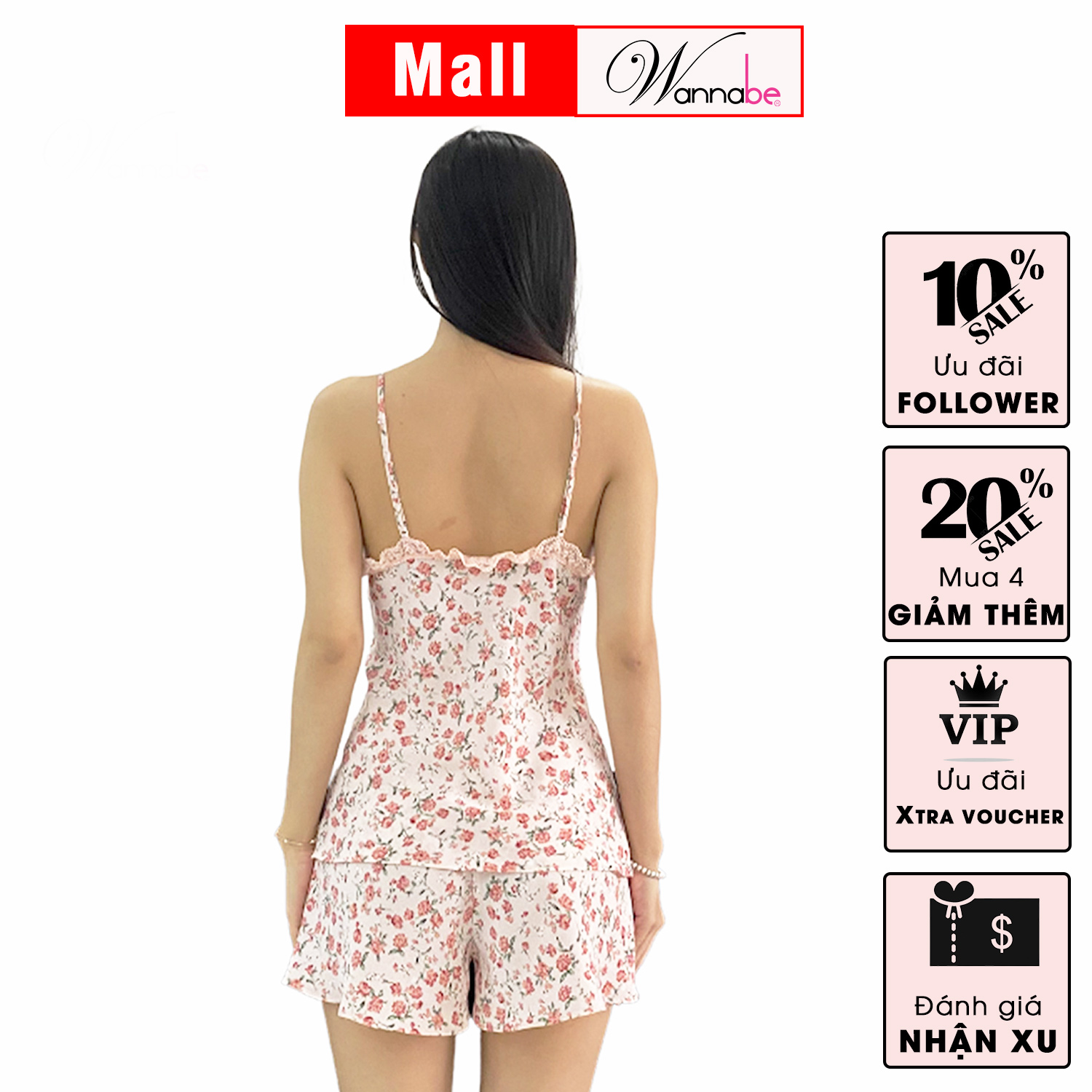 Đồ bộ mặc phi lụa cao cấp WANNABE BSS38 bộ sọt 2 dây cúp 2 lớp tạo độ phồng cúp ngực nữ tính trẻ trung năng động Đồ bộ mặc nhà phi lụa cao cấp