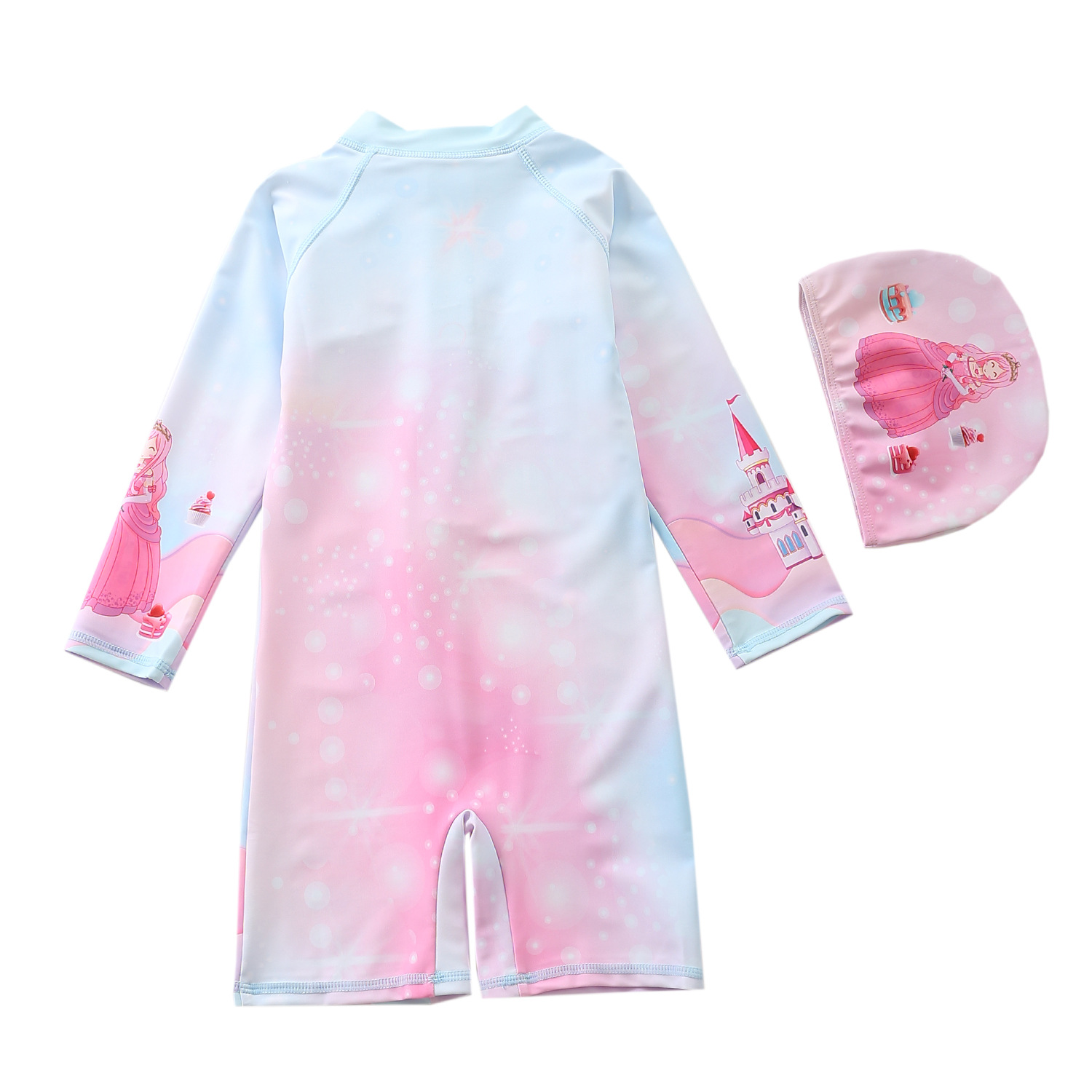 Đồ bơi bé gái liền thân dài full body chống nắng, chất vải mềm mại, họa tiết kỳ lân rất được các bé yêu thích. Chất liệu vải thun co dãn tốt, thoát nước nhanh