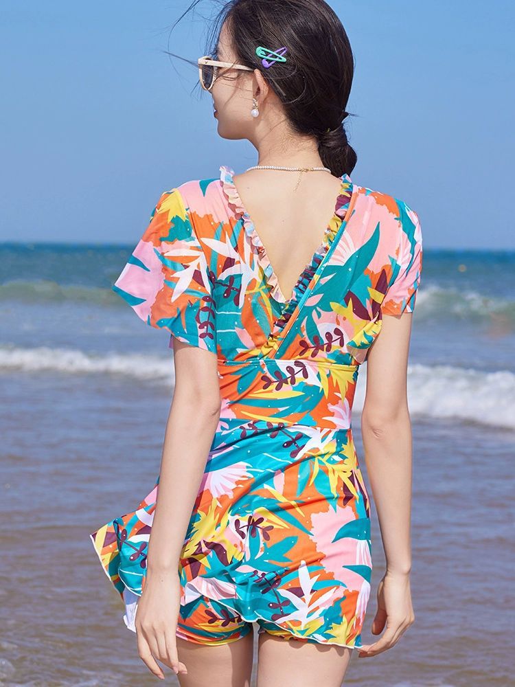 Đồ bơi liền mảnh che bụng thời trang cho nữ Áo có mút sẵn Hoạ tiết hoa bắt mắt thời trang Có quần đùi liền bên trong váy Chất liệu: Vải thun lạnh 4 chiều,