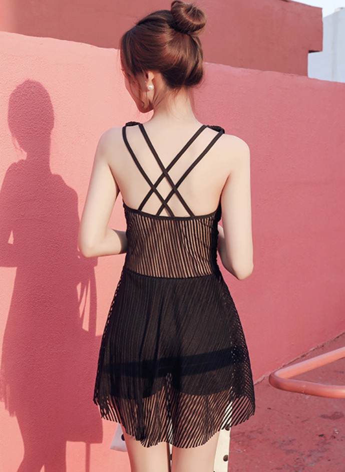 - Mẫu liền thân dễ mặc, che khuyết điểm tốt, kín đáo mà vẫn gợi cảm dành cho các bạn nữ. - Thiết kế phối ren lưới phần tay vai và lưng tạo sự quyến