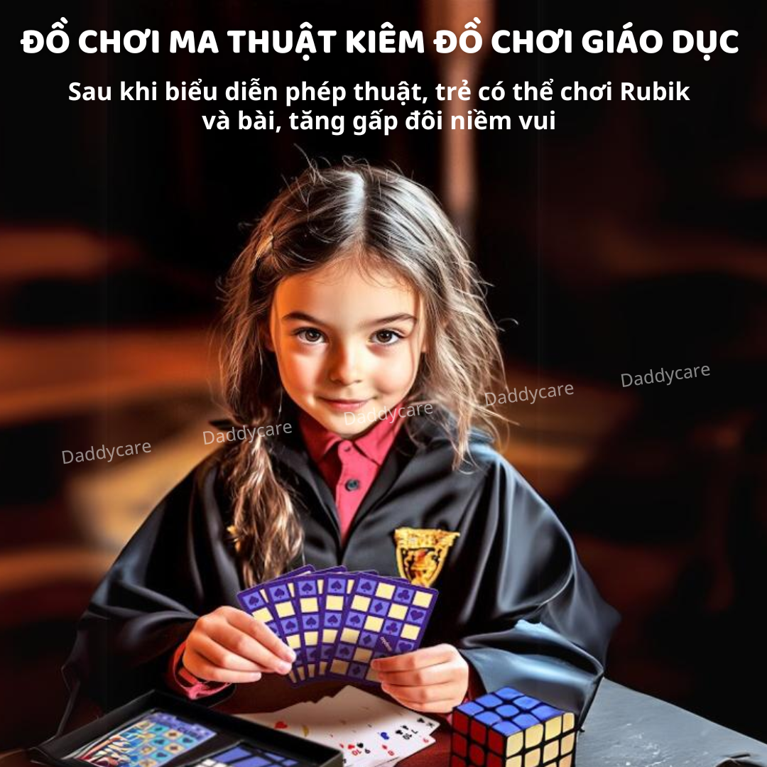 - VỪA LÀ MÓN ĐỒ MA THUẬT, VỪA LÀ ĐỒ CHƠI GIÁO DỤC: Sau khi biểu diễn phép thuật, có thể sử dụng khối rubik và bộ bài để tổ chức những trò chơi giáo dục cổ điển, mang đến niềm vui gấp đôi cho trẻ nhỏ!
